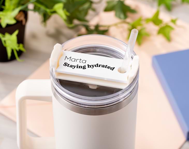 Beber agua es algo que no podemos olvidar durante todo el día, porque mantenernos hidratados, sea verano o invierno, es súper importante. Si tú también has caído en la moda de los vasos Stanley, tenemos el accesorio perfecto para ti: ¡tu propia placa de metacrilato personalizada! Es ideal para que puedas colocarla en el termo, justo donde está situada la pajita y darle un rollo muy guay. Como sabemos que cada día es posible que tengas un 'mood' o estado de ánimo diferente, podrás elegir el diseño que más te guste y nosotros nos encargamos de plasmarlo en este original accesorio. Además de poder elegir entre cuatro diseños, también podrás elegir el tamaño que quieras dependiendo del vaso que tengas (40 o 30 onzas) y también el color del metacrilato. ¡Hay para todos los gustos! No te preocupes porque personalizar esta placa de metacrilato es muy sencillo. Elige el tamaño, añade el producto al carrito y entra en el área de personalización. Una vez dentro, solo tienes que elegir tu 'moood' y completar el diseño con el nombre que quieras para que sea el regalo más chulo del mundo. ¡Es genial para cualquier ocasión! Medida tamaño grande: 8,3 x 3,5 x 0,3 cm. Medida tamaño pequeño: 7,3 x 3 x 0,3 cm.