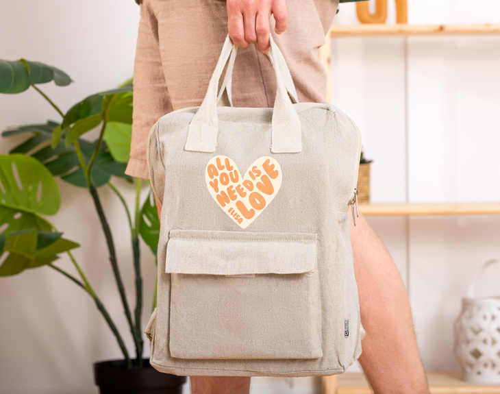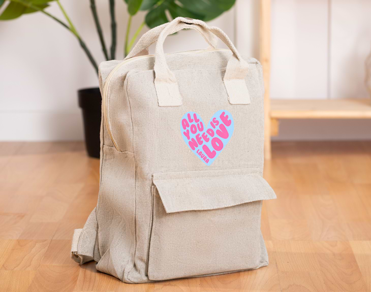 ¿Acaso hay algo mejor que el amor? ¡Está claro que no! Una preciosa forma de demostrar todo ese amor que tienes es a través de los regalos. Por eso, si quieres sorprender a esa persona tan especial, nuestra mochila beige personalizada con diseño "All you need is love" será el regalo perfecto. Esta mochila fabricada de algodón reciclado se convertirá en la compañera ideal. Es perfecta para el día a día como para ir a la universidad, a alguna excursión o para hacer ese viaje que requiere poco equipaje. Además, lo mejor es que es personalizable, podrás escribir el nombre que tú quieras y nosotros lo ponemos en el estampado de la mochila. Personalizar esta mochila beige es muy sencillo. El primer paso a seguir consiste en añadir el producto al carrito y entrar al área de personalización. Una vez ahí, ya puedes escribir el nombre que tú quieras. Pronto estará perfecto y listo para regalar. ¡Será un original regalo para cualquier ocasión! Medidas: 25 X 10 X 35 cm. Material: Algodón reciclado.