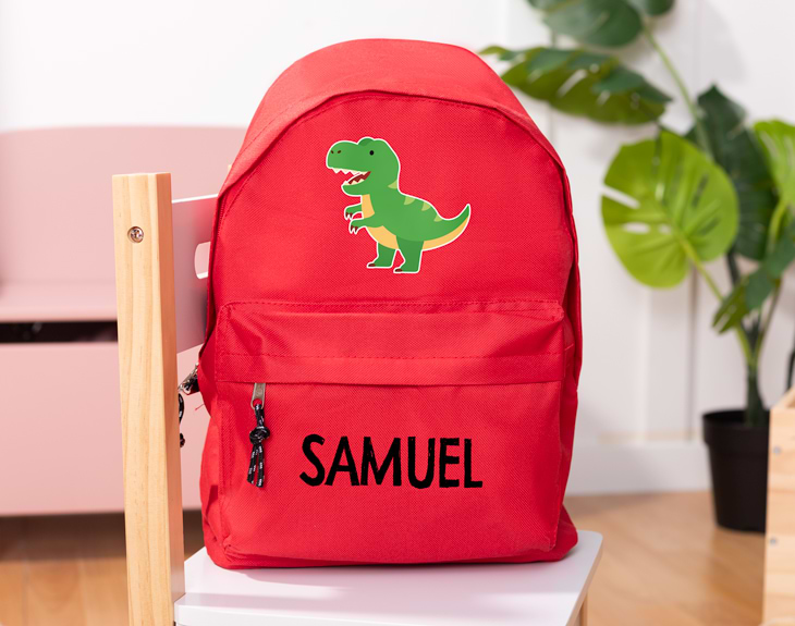 El despertador vuelve a sonar y toca despertarse para afrontar el primer día de clase. Septiembre ha llegado y un nuevo curso escolar va a comenzar, porque ni los más peques de la casa se libran de volver a la rutina. Y si hay algo que hay que hacer antes de volver al colegio, es preparar todas las cosas que tu hijo tiene que llevarse. ¿Sabes lo que no le podrá faltar? ¡Su propia mochila personalizada! Con ella empezar el cole será un poquito menos duro y les hará muchísima ilusión llevarla todos los días y enseñarla a todo el mundo. ¡Será el centro de todas las miradas! Con esta original y divertida mochila el peque de la casa estará listo para volver al cole con más ganas que nunca. Esta mochila tan guay se convertirá en su mejor aliado para acompañarle en todas las aventuras de este nuevo curso. Pero sin duda lo que más les gustará es su diseño donde los protagonistas son estos dinosaurios tan adorables. Pero espera porque todavía hay más, porque podrás elegir el color que más te guste para tu mochila. ¡Hay para todos los gustos! No puedes olvidarte de personalizar esta mochila tan guay si quieres que sea única. Añade el producto al carrito y entra en el área de personalización. Primero elige el color para la mochila, ¡tenemos un montón! Después, escoge tu dinosaurio favorito y escribe tu nombre para completar el diseño. Hazte con la mochila más cómoda para el colegio. ¡Los niños no querrán llevar otra al cole! Medidas aproximadas: 38 cm x 40 cm.