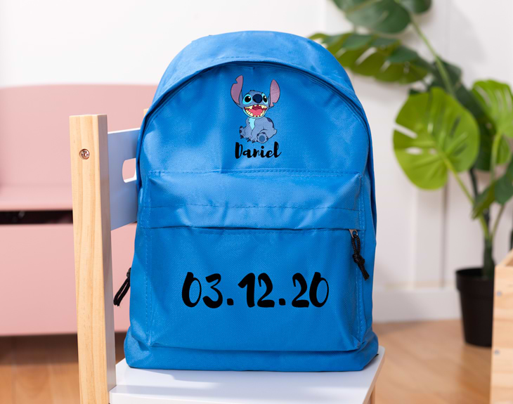 ¿Acaso hay alguien que no sea fan de Stitch? Ese personaje de Disney que es súper adorable y al mismo tiempo un desastre, ¡Es genial! Si quieres sorprender al más peque de la casa, tenemos el mejor regalo. Nuestra mochila personalizada con diseño "Stitch" es ideal para la vuelta al cole. ¡Le encantará! Además, la vuelta al cole ya está aquí. Esta mochila es perfecta para llevar de un lado a otro el material escolar, ¡tiene el tamaño perfecto! Y está disponible en un montón de colores para elegir. ¡Elige su favorito! Lo mejor que tiene es que es personalizable, podrás escribir el nombre del más peque. ¡Será la envidia de toda la clase! strong>Personalizar esta mochila es muy sencillo. El primer paso a seguir consiste en añadir el producto al carrito y entrar al área de personalización. Una vez ahí, ya puedes escribir el nombre que tú quieras. Pronto estará perfecta y lista para regalar. ¡Será un original regalo para la vuelta al cole! Medidas aproximadas: 38 cm x 40 cm.
