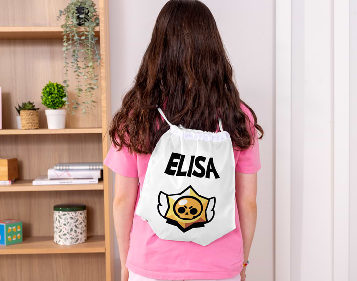 ¿Tu peque es amante de los videojuegos? Si le encanta Brawl Stars por su acción, estrategia y personajes, esta mochila de cuerdas personalizada es perfecta para que siga completando misiones… ¡pero esta vez en el cole! Podrá sumar puntos extra, pasar de curso con habilidades únicas y coleccionar trofeos, ¡como en el videojuego! Esta mochila infantil es ideal para llevar la merienda, una botellita de agua o sus objetos más valiosos, como si fueran gemas del juego. Te aseguramos que no querrá dejarla en casa, porque se convertirá en su compañera inseparable en cada aventura y actividad. Sin duda, es un regalo original que le fascinará. Personalizarla es muy fácil: solo tienes que añadirla al carrito, elegir el diseño que más te guste y escribir el nombre del peque. ¡Y listo! Tendrás para tu hijo la bolsa de cuerdas infantil que convertirá su día a día en una auténtica partida con estilo Brawl. Medidas: 32cm x 27cm Material: suave poliéster 210T