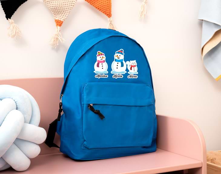El verano, el solecito y las vacaciones está muy bien, pero el invierno también tiene sus cosas buenas. Y es que, no hay nada mejor que los días fríos tomando chocolate calentito en casa con una mantita, la nieve o la Navidad. Por eso, esta mochila personalizada es genial para los amantes de esta estación. Para personalizarla solamente tienes que escoger los personajes que mejor os representen y decirnos vuestros nombres. ¡Un regalo genial que llevará a todos lados! Importante: a partir de 6 personajes. se colocarán en dos filas. Es decir: - Familia de 6 personajes: 3 en la fila superior, y 3 en la inferior. - Familia de 7 personajes: 4 en la fila superior, y 3 en la inferior. - Familia de 8 personajes: 4 en la fila superior, y 4 en la inferior. Medidas aproximadas: 38cm x 40cm.