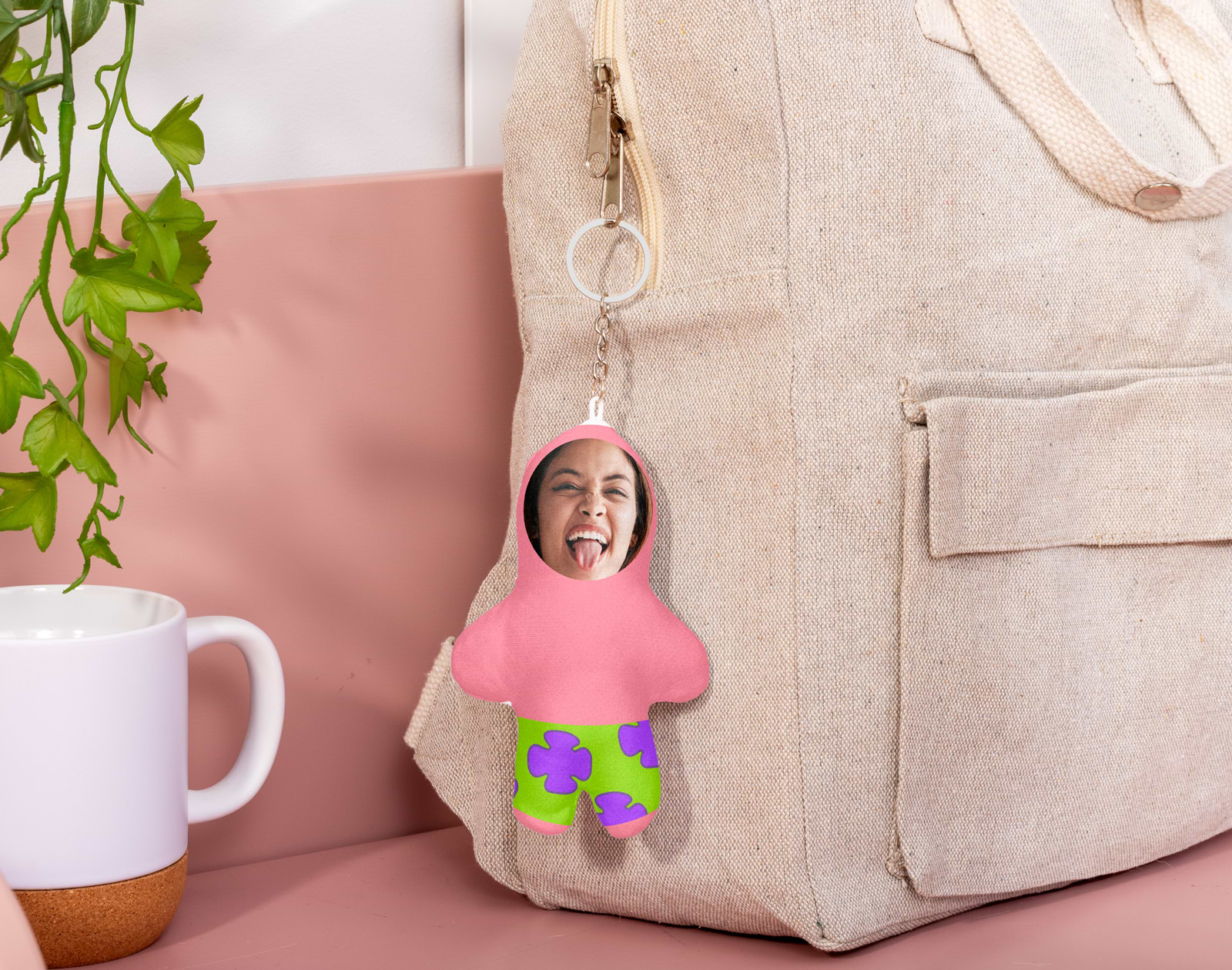 Bob Esponja y Patricio. Dos personajes tan diferentes pero con una amistad tan bonita, que seguro que te recuerda a ti y tu mejor amigo. Sorprende a tu otra mitad con un regalo único y muy divertido: nuestro llavero de peluche personalizado con foto. ¡Le hará muchísima gracia! Si como Bob Esponja y Patricio, vosotros también habéis vivido miles de aventuras y momentos juntos, este original muñeco lleva vuestro nombre. Porque si ambos sois fans de esta divertida serie, le encantará recibir algo tan único como este pequeño detalle, con el que siempre se acordará de ti. ¡Es genial! Para personalizar este llavero solo tienes que entrar en nuestro diseñador, elegir qué personaje quieres, subir una foto al sistema para añadirla al muñeco y listo. Así de fácil es crear un regalo tan divertido. ¡Triunfarás seguro! Medidas del muñeco: 14 x 9 cm. Material: poliéster.