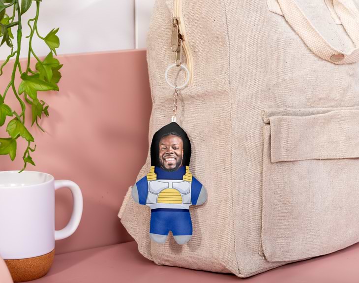 Si creciste viendo Dragon Ball, sabes que no era solo una serie: era la serie. Ya fuera con el desayuno o la merienda, todos estábamos enganchados a las aventuras de Goku, Vegeta y compañía. Este mítico manga conquistó el mundo entero y sigue vivo en el corazón de miles de fans que cada año se disfrazan de sus personajes favoritos en ferias, eventos y celebraciones. Si tú eres uno de ellos —o conoces a alguien que lo sea—, este muñeco llavero de peluche personalizado con tu cara y el cuerpo de un personaje de Dragon Ball será su regalo favorito. Este llavero no solo es súper suave y blandito, sino que además es ideal para colgarlo en tus llaves, mochila o bolso y llevar siempre contigo a tu personaje preferido. Un muñeco llavero original y divertido, perfecto tanto para niños como para adultos que siguen soñando con las aventuras de su infancia. Porque no hay mejor forma de revivir esos momentos mágicos que con un detalle tan especial como este. Personalizarlo es facilísimo: solo tienes que subir una foto clara y de frente al diseñador desde cualquier dispositivo. Podrás recortarla para ajustarla al diseño y conseguir un acabado increíble. Luego, escoge el cuerpo del personaje: Goku, Vegeta o Majin Boo. En pocos pasos tendrás un regalo original para fans de Dragon Ball. ¡Hazte con el tuyo y sorprende como nunca! Medidas del muñeco: 14 x 9 cm. Material: poliéster.