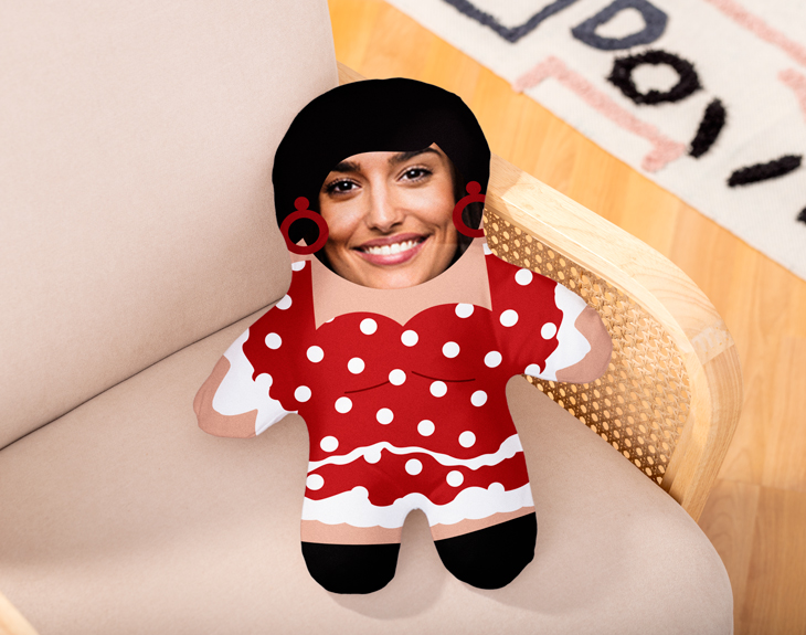 ¡El muñeco con más arte y salero del mundo ha llegado! Dicen que Andalucía tiene un color especial y razón no les falta. Porque a todos nos encanta pasear por sus calles llenas de vida e historia, disfrutar de la famosa Feria de Sevilla o ponernos las botas con su comida más típica. Por eso, si tú también conoces a alguien que tiene alma sevillana, el mejor regalo que puedes hacerle es este muñeco de peluche personalizado con foto y su precioso traje de flamenca que es lo más. No importa la ocasión que se acerque porque este original muñeco es perfecto para alegrar a alguien en cualquier cumpleaños, amigo invisible o incluso en Navidad. Este peluche tiene todo lo que nos gusta: un traje de flamenca típico rojo con sus lunares blancos y lleno de volantes, un buen moño y una peineta. ¡Vamos, que es el muñeco con más gracia que te vas encontrar! Y lo mejor es que puedes añadirle la cara de quien tú quieras. Para poder personalizar este muñeco, el primer paso es añadir el producto al carrito y entrar en el área de personalización. Una vez dentro, podrás subir la imagen que quieras para añadir la cara de la persona que va a recibir este muñeco tan divertido. Nosotros nos encargamos del resto para que tú solo disfrutes de este muñeco y te cantes unas buenas sevillanas. Además, podrás personalizar este muñeco añadiendo una grabación de voz, eligiendo la opción de “Muñeco con voz”. ¡Podrás incluir la voz o canción que quieras en este muñeco! ¿Cómo se graba el mensaje? ¡Es muy sencillo! Añade el muñeco al carrito y dale al botón de "personalizar". Podrás grabar un mensaje en ese momento (con el micro del móvil o del ordenador) y nosotros nos encargaremos de incluirlo en el peluche. ¡El único límite es tu imaginación! Puedes cantar, ponerte romántico, hacer una proposición... Límite de grabación: 30 segundos. Una vez se reciba el muñeco, habrá que tomar una difícil decisión: se puede repetir el mensaje original (manteniendo pulsado el bracito derecho del muñeco cada vez que quieras escucharlo) o grabar un mensaje nuevo (cada vez que mantengas pulsado el bracito izquierdo del muñeco). Medidas del muñeco: 50 x 35 cm. Material: poliéster.