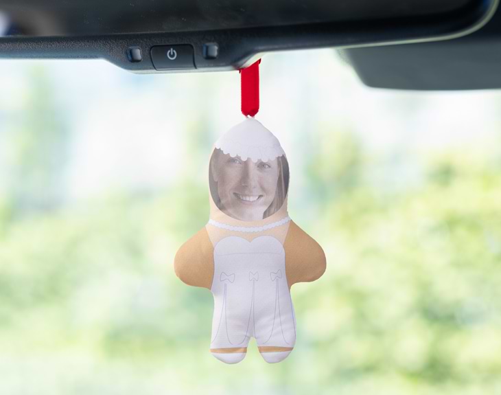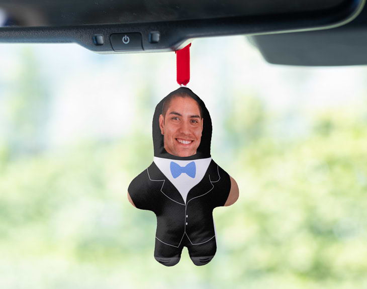 ¿Se casan tus amigos y quieres sorprenderles con algo único, divertido y personalizado? Este adorno para coche con muñeco de boda es el detalle perfecto para quienes están a punto de dar el “sí, quiero”. Un regalo original para bodas que no solo arranca sonrisas, sino que también se convierte en un recuerdo para toda la vida. ¡Les encantará colgarlo en el espejo retrovisor y revivir ese momento tan especial cada vez que suban al coche! Este muñeco de boda personalizado está diseñado para hacer que su gran día sea aún más inolvidable. Es ideal como detalle para regalar antes de la boda o durante las despedidas de soltero o soltera, acompañándoles en todos los trayectos previos al gran día. ¡Imagina las risas desde que lo vean! Personalizarlo es facilísimo: solo tienes que subir las fotos de sus caras y nuestro diseñador se encargará de adaptarlas para que queden perfectas en los trajes de boda. Podrás ver en todo momento una vista previa del resultado antes de confirmar el diseño. ¡La sorpresa está asegurada! Confeccionado en poliéster y con unas medidas de 14 x 9 cm, este accesorio original para el coche es el regalo más divertido del mundo. Porque las bodas merecen más que regalos tradicionales... ¡merecen momentos inolvidables!