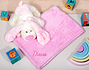 Si estás buscando un regalo realmente original para celebrar el nacimiento del bebé de la casa, nuestra manta personalizada con un tierno peluche es la mejor opción. A la pequeña le encantará dormirse acurrucada en su mantita abrazando a su nuevo mejor amigo. Solamente tienes que decirnos el nombre para bordar en la manta. ¡Le encantará tanto a los padres como a la princesita! Además, podrás personalizar este peluche añadiendo una grabación de voz. ¡Podrás incluir la voz o canción que quieras en este muñeco! ¿Cómo se graba el mensaje? ¡Es muy sencillo! Añade el peluche al carrito y dale al botón de "personalizar". Podrás grabar un mensaje en ese momento (con el micro del móvil o del ordenador) y nosotros nos encargaremos de incluirlo en el peluche. ¡El único límite es tu imaginación! Puedes cantar, ponerte romántico, hacer una proposición... Límite de grabación: 30 segundos. Una vez se reciba el muñeco, habrá que tomar una difícil decisión: se puede repetir el mensaje original (manteniendo pulsado el bracito derecho del muñeco cada vez que quieras escucharlo) o grabar un mensaje nuevo (cada vez que mantengas pulsado el bracito izquierdo del muñeco). Importante: La manta y el peluche varían según stock y llegan de manera aleatoria. ¡Así es aún más emocionante!