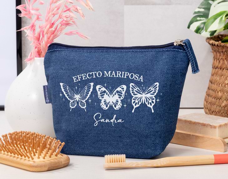 Si una de tus grandes pasiones es viajar por el mundo y tienes mucha experiencia en ello, está claro que sabrás lo importante de ir siempre bien preparado y con todo lo necesario para evitar que surjan imprevistos. Algo que no puede faltar en tu maleta de viaje es nuestro neceser denim personalizado con diseño "Efecto mariposa". ¡Es genial! Este neceser vaquero personalizado es ideal para que puedas guardar todo lo necesario para tu higiene personal, como el maquillaje, cepillo de dientes, pasta de dientes, lentillas, crema, cepillo... ¡Cabe de todo! ¡Se convertirá en tu mejor compañero de viaje! Además, lo mejor es que es personalizable. Podrás escribir el nombre que tú quieras, así todos sabrán de quien es. Personalizar este neceser vaquero es súper sencillo. El primer paso a seguir consiste en añadir el producto al carrito y entrar al área de personalización. Una vez ahí, ya puedes escribir el nombre que quieras. Pronto estará perfecto y listo para regalar. ¡Será un original regalo para viajeros! Dimensiones: 20 cm de largo x 14 cm de alto x 7,5 cm de ancho.