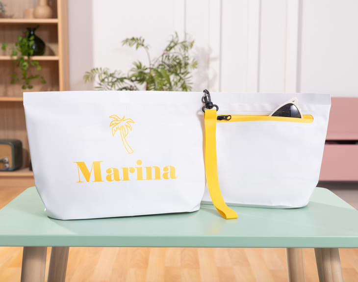 Ahora que llega el verano es el momento de hacer todos esos viajes y disfrutar al máximo de las vacaciones. Y nosotros tenemos algo que no te puede faltar en tu equipaje, se trata de nuestro neceser impermeable personalizado con diseño "Símbolos naturales". Lo mejor de este neceser es que es impermeable, por eso, es muy cómodo para llevarlo a la playa y a la piscina, podrás guardar todo lo que quieras proteger del agua. ¡Es genial! Además, está disponible en dos colores: amarillo o azul oscuro. Y es personalizable, podrás escribir el nombre que tú quieras. Personalizar este neceser impermeable es súper sencillo. El primer paso a seguir consiste en añadir el producto al carrito y entrar al área de personalización. Una vez ahí, ya puedes escribir el nombre que tú quieras y nosotros nos encargamos de todo lo demás. Pronto estará perfecta y lista para regalar. ¡Será un original regalo para verano! Medidas: 32 x 11 x 20 cm.