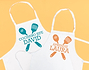 • 2 Delantales de cocina personalizados. • Tarjeta recordatoria.