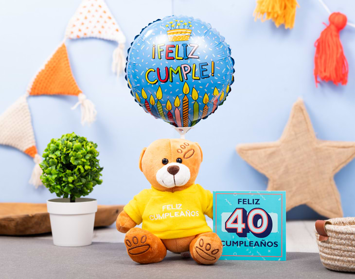 • Libro de 52 páginas. • Peluche "Feliz cumpleaños". • Globo Feliz cumpleaños. • Tarjeta recordatoria.