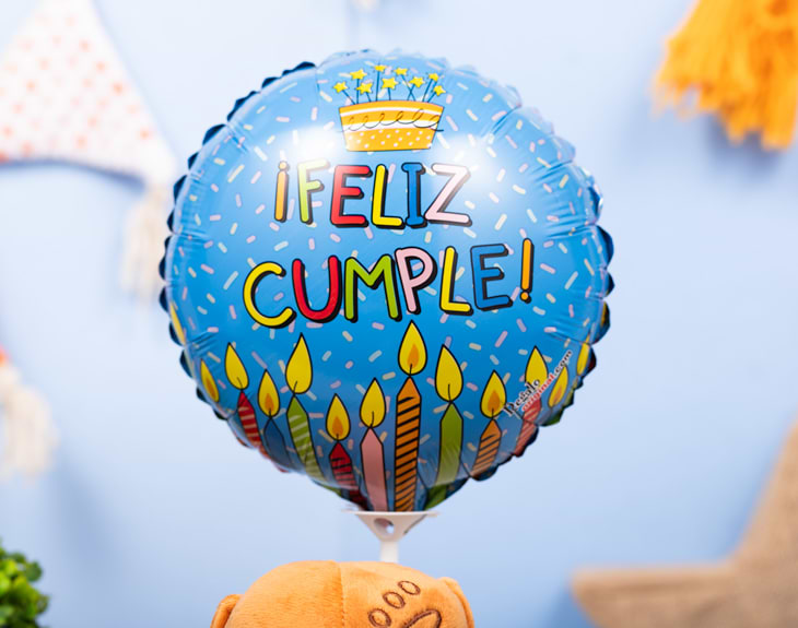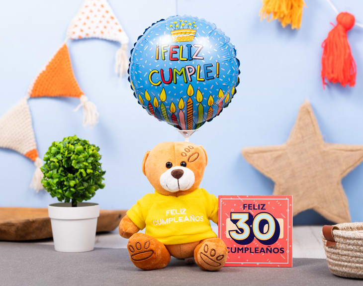 • Libro de 52 páginas. • Peluche "Feliz cumpleaños". • Globo Feliz cumpleaños. • Tarjeta recordatoria.