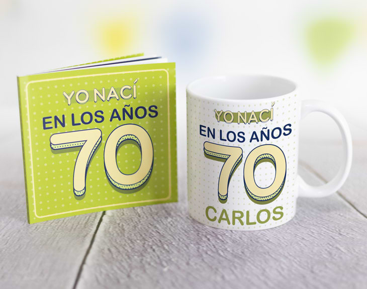 El pack personalizado perfecto para sorprender a esa persona que nació en los años 70 y vivió el estreno de Star Wars en cine o cómo la televisión pasó de blanco y negro a color. Si tú también conoces a alguien que vivió esta época tan maravillosa y se siente muy orgulloso u orgullosa por ello, este regalo original tiene su nombre. Y es que, así podrá recordar con mucho cariño cómo era todo en esos años. Además, incluye también una taza personalizada para que pueda desayunar cada mañana y cargar las pilas para el resto del día. ¡Seguro que se convierte en su taza favorita!