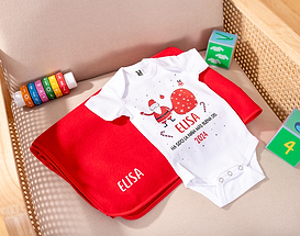 Ahora que llega la Navidad, también llega el invierno con sus bajas temperaturas. Sin duda, es una de la mejores épocas del año pero también una de las más frías. Por eso, hay que abrigarse muy bien. Si quieres sorprender al más peque de la casa con un regalo súper original, tenemos el detalle perfecto. Se trata de nuestro pack de body con manta personalizado con diseño "Cascanueces". Gracias a este pack, el más peque no pasará nada de frío en invierno. Incluye un body que puede elegir el color entre rosa, azul, blanco o negro, y una manta de color rojo. ¡Es perfecto! Y lo mejor es que ambos productos son personalizables, podrás escribir el nombre que tú quieras. ¡Quedará genial! Personalizar este pack de body y manta es muy sencillo. El primer paso a seguir consiste en añadir el producto al carrito y entrar al área de personalización. Una vez ahí, ya puedes escribir el nombre que tú quieras. Pronto estará perfecto y listo para regalar. ¡Será un original regalo para Navidad!