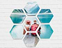 • Marcos de fotos hexagonales de madera compacta con el interior negro (24,5x21 cm). • Tarjeta Recordatoria.