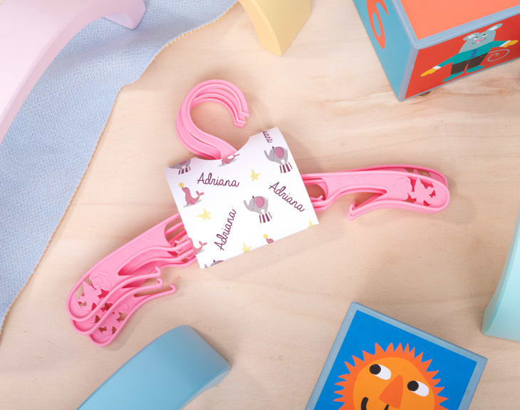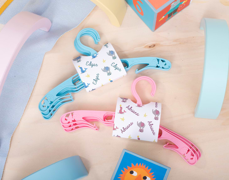 La habitación de tu pequeño tiene que ser de lo más colorida... ¡Incluyendo su armario! ¿Qué mejor forma de colocar todas sus ropas de la forma más alegre y divertida que con este pack de perchas infantiles personalizadas? Un pack de 3 perchas con las que colocar tanto chaquetas y camisetas como pantalones. ¡Es un detallazo para los papás! Unas perchas infantiles de color rosa o azul como esta quedarán de lujo en el armario de tus hijos. Estas están decoradas con diferentes dibujos y contornos de lo más divertidos. Estas tres perchas vienen juntas gracias a un pequeño cartoncito, hecho con un papel que cuenta con un gramaje de 300 g. ¿Cómo podrás personalizar este regalo original para padres e hijos? Solo tendrás que añadir el producto al carrito y elegir el color de percha que quieres entre los dos disponibles: azul o rosa. Después solo tendrás que entrar en el área de personalización y personalizar el diseño del cartoncito con el nombre que quieras. ¡Quedará monísimo! Gramaje del cartón: 300 g. Material de las perchas: plástico.