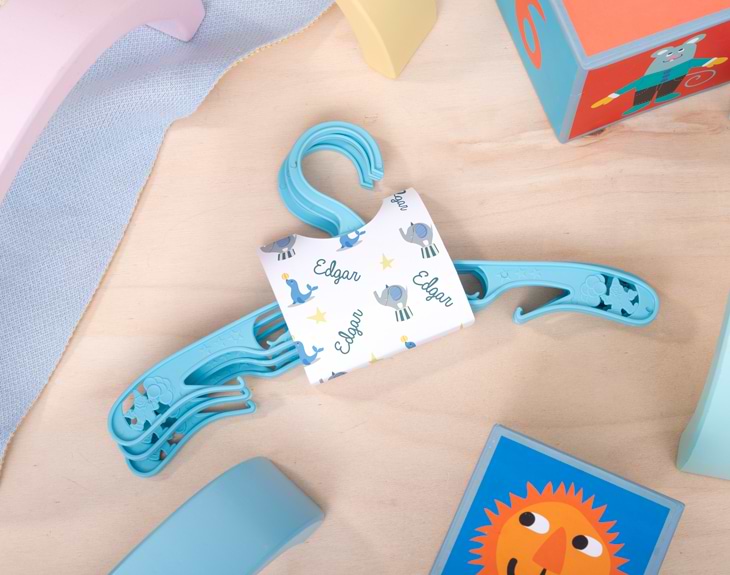 • Pack 3 perchas infantiles personalizado. • Tarjeta recordatoria.