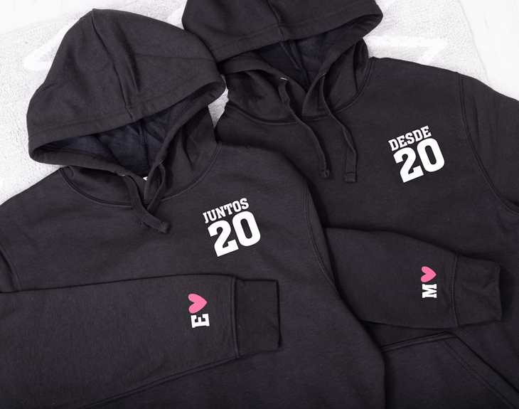 Seguro que te acuerdas cuándo fue la primera cita que tuviste con tu pareja, el día que os distéis vuestro primer beso o vuestra fecha de aniversario. Por eso, la mejor manera de recordar esa fecha tan especial para vosotros es con este pack de dos sudaderas personalizadas. Un regalo diferente que dejará sin palabras a tu persona favorita porque no tiene nada que ver con los típicos regalos que se suelen regalar en San Valentín. ¡Triunfarás el día más romántico del año! El próximo 14 de febrero es el día perfecto para entregarle a tu pareja este original regalo que le encantará. Estamos seguros de que estas sudaderas se convertirán en vuestra prenda favorita y también en la más romántica y especial del mundo. Además, podrás elegir el color que más os guste y la talla para que os quede como un guante. Seréis el centro de todas las miradas vayáis donde vayáis. ¡Son lo más! No te olvides de personalizar este pack de sudaderas para que sean las más chulas del mundo. Añade el producto al carrito y entra en el área de personalización. Una vez ahí podrás diseñar cada sudadera escribiendo el texto que quieras. También, podrás elegir el color del texto teniendo en cuenta el color de sudadera que hayas escogido. ¡No habrá mejor regalo que estas sudaderas! Colores disponibles: gris, negro o azul marino. Tallas disponibles: S, M, L, XL, XXL. Importante: Las medidas son aproximadas, pueden variar 5 cm por encima o por debajo.