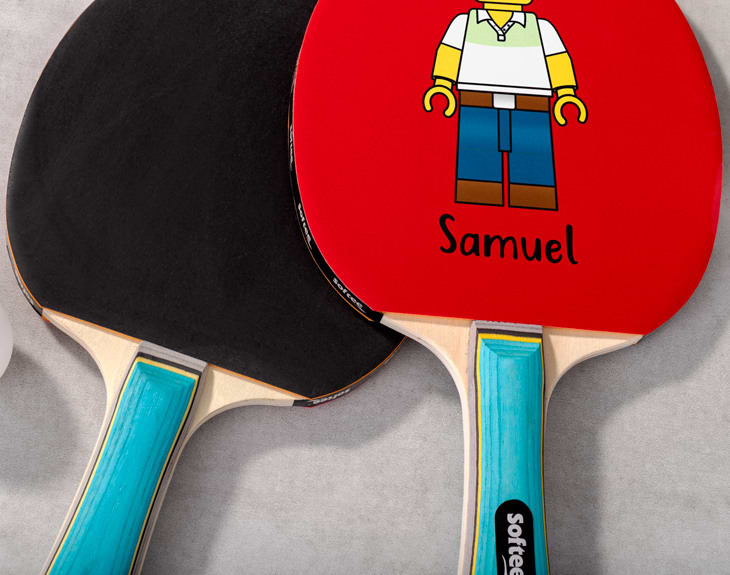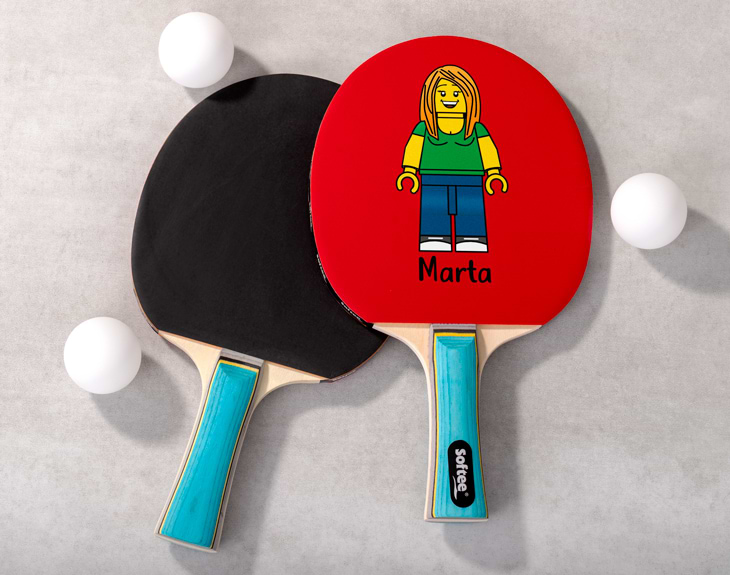 ¿Cuáles son algunas de las actividades fundamentales a la hora de disfrutar del verano con toda la familia? Está claro que todos tenemos algunos momentos imprescindibles que hacen que estos meses sean inolvidables: los filetes de pollo empanado en los días de playa, los paseos con la familia por el paseo marítimo... ¡O todas esas partidas de Ping Pong en las que papá siempre dejaba ganar! Estas palas de Ping Pong personalizadas harán que esos momentos sean mucho más divertidos. Y es que estas palas de madera personalizadas con diseño Lego también pueden ser el mejor detalle para ese amigo o familiar que está obsesionado con el Ping Pong. Las palas tienen el diseño y tamaño estándar de esta clase de palas. 25 centímetros con mango de madera para poder agarrar bien la pala. ¡Así seguro que no se os escapa! Pero... ¿Qué puede faltar para hacer que este regalo original para toda la familia sea todavía más único? ¡Fusionarlo con los clásicos muñecos Lego! Una vez escojas el producto que más te encaje (1 pala, 2 palas o 2 palas + pelotas) podrás entrar en el diseñador, donde podrás elegir entre uno de nuestros personajes predeterminados o, por el contrario, podrás crear vuestros propios personajes en el diseñador. ¡Contamos con todos los detalles que quieras para tu personaje Lego! Importante: si eliges la opción con pelotas, estas serán tres. Medida de la pala: 25 cm. Color de la pelota: surtido.