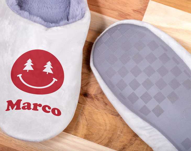 ¡La Navidad ya está aquí! Es una de las mejores épocas del año, nos reunimos con nuestros seres queridos, tenemos comidas familiares y recibimos muchos regalos. Si quieres sorprender a esa persona tan especial en estas fechas, tenemos el detalle perfecto. Se trata de nuestras pantuflas personalizadas con diseño "Papá Noel". Con un diseño alegre y navideño que incluye una carita sonriente, estas pantuflas traerán felicidad a cada paso. Además, lo mejor es que son personalizables, podrás escribir el nombre que tú quieras. Regala sonrisas y comodidad con este detalle pensado para quienes quieren disfrutar de la Navidad desde sus hogares. Personalizar estas pantuflas es muy sencillo. El primer paso a seguir consiste en añadir el producto al carrito y entrar al área de personalización. Una vez ahí, ya puedes escribir el nombre que tú quieras. Pronto estará perfecto y listo para regalar. ¡Será un regalo original para Navidad! Talla: 26 cm x 11,5 cm (36-38). Material: algodón/poliéster.