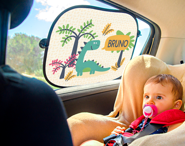 Imagina esos días soleados en los que cada viaje en coche se convierte en una pequeña aventura para los más pequeños. Nuestro parasol lateral para coche con diseño de dinosaurio convierte la ventana en un espacio divertido y colorido, protegiendo a tus hijos del sol directo para que viajen cómodos y sin molestias. Gracias a su tamaño, se adapta perfectamente a la mayoría de ventanas laterales, manteniendo el interior del coche fresco y protegido. Y lo mejor de este parasol lateral es que es personalizable con nombre o cualquier texto que quieras, convirtiéndolo en un original accesorio para el coche. Además, incluye un estuche personalizado para guardarlo cuando no lo uses y dos ventosas resistentes que fijan el parasol sin dañar la ventana. Personalizarlo es muy sencillo: solo tienes que añadir el producto y entrar al área de personalización. Allí podrás añadir el texto que quieras y nosotros nos encargaremos del resto, estará listo para que protejas a tus hijos del sol mientras das un toque original y divertido a tu coche. Ideal para regalar o para disfrutar en familia durante cada viaje. Medidas: 37,5 x 45.