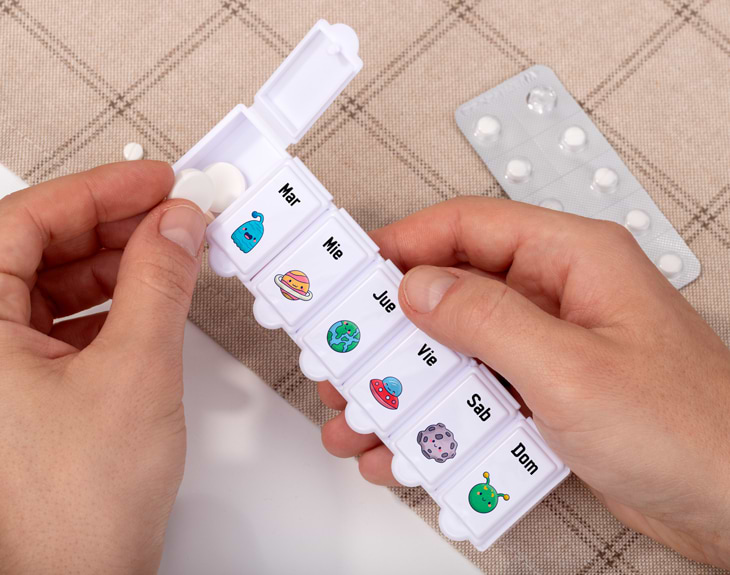 Este pastillero personalizado semanal transforma la organización de tus medicamentos en algo bonito, divertido y totalmente único. Cuidar de tu salud o de la de alguien especial, se convierte en una experiencia alegre y original. Porque el estilo y el bienestar hacen un dúo perfecto. Y olvídate de las cosas aburridas, este organizador de pastillas destaca por su diseño kawaii y lleno de encanto, con simpáticos emojis que representan cada día de la semana y llenan tu rutina de color y buen rollo. Podrás elegir el modelo que más te guste y, además, personalizar cada uno de los siete compartimentos con nombres, iniciales o frases cortas. ¡Tú decides cómo hacerlo único! Gracias a su tamaño compacto, también es un excelente pastillero portátil de plástico, ideal para llevar en el bolso, la mochila o el neceser. Su tapa segura evita derrames y su diseño ligero lo hace cómodo de usar para adultos, jóvenes o personas mayores. Es perfecto para llevar un control de la medicación diaria, vitaminas o suplementos, tanto en casa como cuando estás de viaje. Personalizar es muy sencillo: añade el producto al carrito, elige tu diseño favorito y edita cada día como más te guste. Regala cuidado, color y ternura con nuestro estuche para pastillas kawaii; con él, dirás sin palabras "Cuídate con estilo". Medidas: 15,5 x 4 cm.