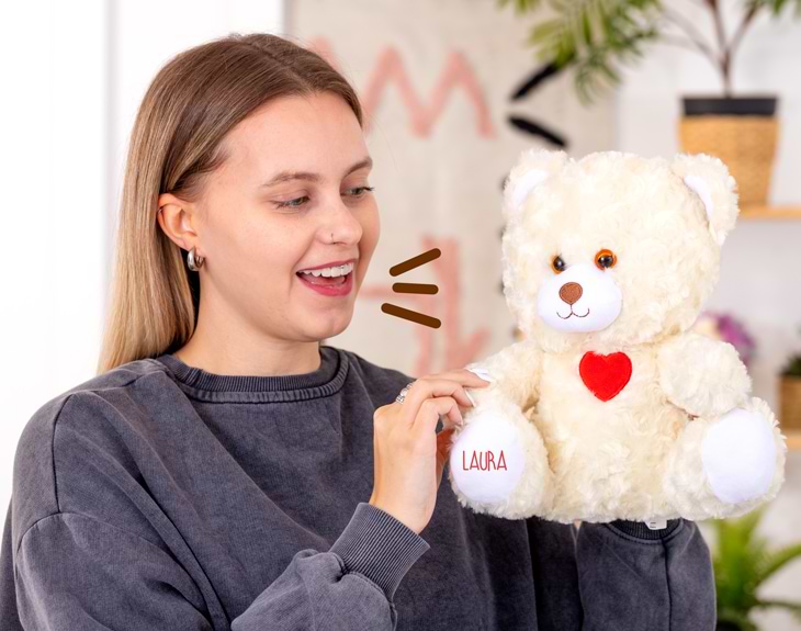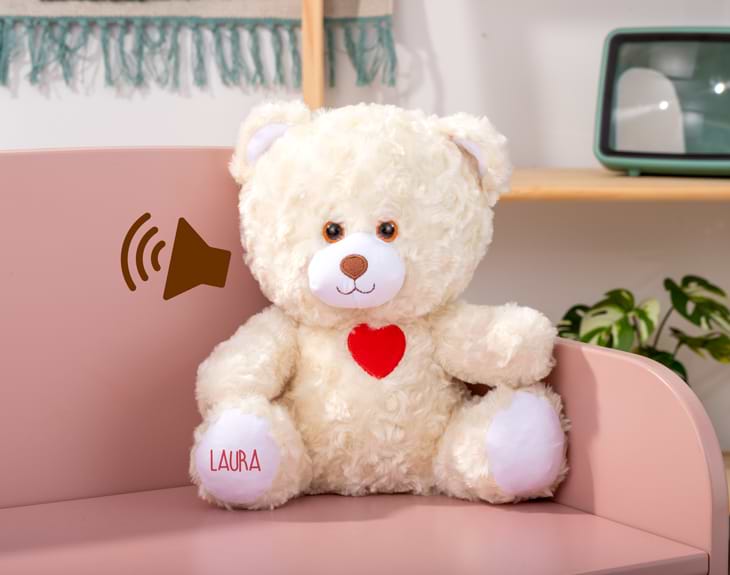 No hay nada más tierno que regalar un osito de peluche a tu persona favorita. Y es que es una buena manera de demostrarle cuánto le quieres o agradecerle algo importante. Si quieres regalar un peluche tan adorable como este pero con un toque muy especial y tierno, nuestro oso de peluche personalizado es el regalo perfecto ¡Nadie se podrá resistir a este osito tan suave y blandito! La sorpresa que esconde este osito es que se entrega con un mensaje de voz que tú mismo puedes grabar. Así, la persona que reciba el regalo escuchará el mensaje con tu propia voz. Es perfecto para regalarlo en cualquier ocasión especial y le encantará a la persona que lo reciba. Grabar el mensaje es muy sencillo Añade el oso al carrito y en el botón de "personalizar" podrás grabar un mensaje en ese mismo momento (con el micro del móvil o del ordenador) y nosotros nos encargaremos de incluirlo en el osito. Pero además, podrás añadir en una de sus patitas el nombre de la persona que vaya a recibir este oso. Será un regalo totalmente personalizado por ti. ¡Le encantará! Una vez se reciba el osito, habrá que tomar una difícil decisión: se puede repetir el mensaje original (manteniendo pulsado el bracito izquierdo cada vez que quieras escucharlo) o grabar un mensaje nuevo (cada vez que mantengas pulsado el bracito derecho). Altura: 26 centímetros. Límite de grabación: 30 segundos.