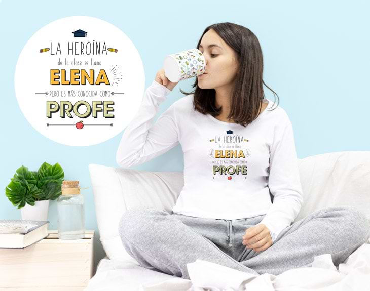 Si este año habéis tenido al mejor profe del mundo y queréis darle una sorpresa que le deje boquiabierto, este pijama personalizado es la opción perfecta. Este pijama El héroe de la clase es una original y divertida forma de agradecerle todo lo que habéis aprendido en sus clases y de decirle lo mucho que valoráis todo su esfuerzo y trabajo. Podréis escoger entre pijamas de verano, de invierno, de adultos e infantiles, además de escoger el color que creáis que más le va a gustar a vuestro profe. Solo tendréis que seleccionar el tipo, color y talla del pijama y decirnos cual es el nombre de vuestro profe. ¡Le encantará! Material: - Camiseta invierno: 100% algodón (excepto color gris: 85% algodón / 15% viscosa). - Camiseta verano: 100% algodón (excepto color gris: 85% algodón / 15% viscosa). - Pantalón invierno: 100% algodón. - Pantalón verano: 100% algodón. Importante: Las medidas son aproximadas, pueden variar 5cm por encima o por debajo. Importante: el tono de los colores puede variar en intensidad según stock
