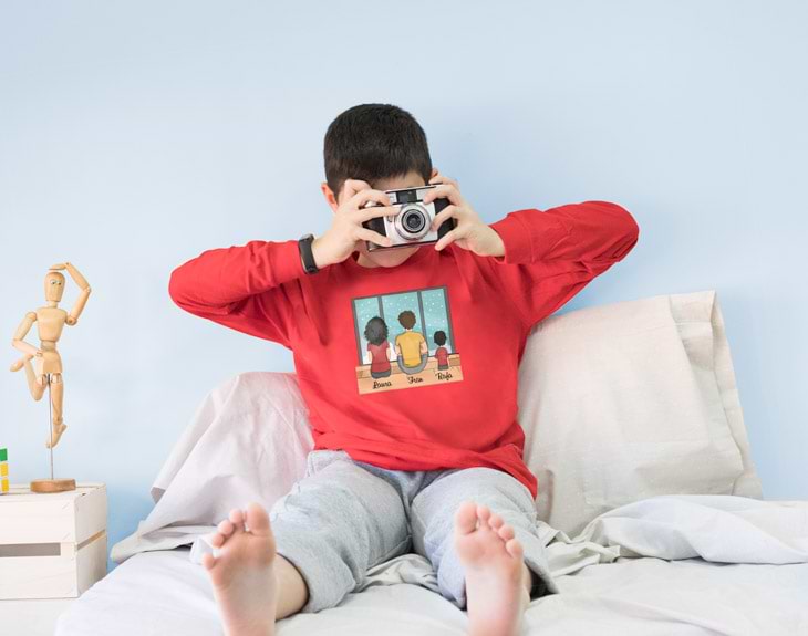 ¿Quieres sorprender al más pequeño de la casa con un detalle súper original y útil que le encantará? No hay nada como recibir un pijama calentito y suave y nuestros pijamas personalizados aparte de serlo son súper chulos y le hará un montón de ilusión recibirlo. Este pijama se personaliza con nuestra familia Chill, una familia que está mirando por la ventana de espaldas. Podrás personalizar cada uno de los personajes según se parezca a tu familia, así vuestro hijo os llevará siempre consigo en las noches más frías del invierno y se mantendrá calentito gracias a él. Tienes 350 personajes entre los que elegir, seguro que hay alguno que se parece a vosotros, y por si quedase alguna duda también podrás añadir el nombre debajo de cada personaje. Si buscas hacer un regalo original a la par que útil este pijama estará cumpliendo todas sus funciones. Seguro que una vez lo tenga en sus manos el príncipe o la princesa de la casa no se lo querrá quitar y querrá dormir todas las noches con él. Es el regalo perfecto para Navidad o para cualquier época del año en la que refresque un poquito por la noche. Material: - Camiseta invierno: 100% algodón (excepto color gris: 85% algodón / 15% viscosa). - Camiseta verano: 100% algodón (excepto color gris: 85% algodón / 15% viscosa). - Pantalón invierno: 100% algodón. - Pantalón verano: 100% algodón. Importante: Las medidas son aproximadas, pueden variar 5cm por encima o por debajo. Importante: el tono de los colores puede variar en intensidad según stock