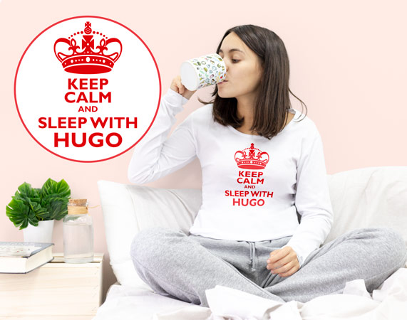 Con este pijama personalizado podrás sorprender a casi cualquier persona. Empieza con la mítica frase de "keep calm" y termina exactamente como tú nos digas. Así, podrás crear un pijama único e irrepetible. El pijama está disponible en versión de verano (manga corta) y de invierno (manga larga), por lo que podrás regalarlo en cualquier época del año. Material: - Camiseta invierno: 100% algodón (excepto color gris: 85% algodón / 15% viscosa). - Camiseta verano: 100% algodón (excepto color gris: 85% algodón / 15% viscosa). - Pantalón invierno: 100% algodón. - Pantalón verano: 100% algodón. Importante: Las medidas son aproximadas, pueden variar 5cm por encima o por debajo. Importante: el tono de los colores puede variar en intensidad según stock
