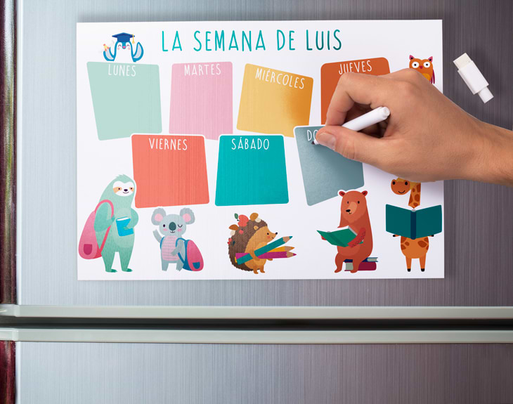 La vida es demasiado complicada como para no estar organizados. Saber lo que tenemos que hacer cada día y a lo largo de la semana nos ayuda a mantener nuestra vida organizada, que falta nos hace. ¿Quieres poner un poquito de orden en tu vida porque es un caos? No te preocupes que con esta pizarra magnética personalizada ya no tendrás excusa. ¡Ahora tendrás todas tus tareas organizadas! Si no quieres olvidarte nada o quieres sorprender a esa persona que saber que es un poco desastre, sorpréndela con este original planner con imán. El regalo perfecto para triunfar en cualquier celebración y decirle de forma sutil a esa persona que tanto quieres que necesita un poquito de orden en su vida. Gracias a su imán en la parte trasera, podrás colocarlo en la nevera para tenerlo siempre a la vista y apuntar todo lo que quieras. ¡Es el regalo perfecto! Pero espera porque todavía tienes que personalizar este planificador semanal. Lo único que tienes que hacer es añadir el producto al carrito y entrar en el área de personalización. Ahí encontrarás nuestro precioso diseño con estos adorables animalitos que podrás completar con el texto que quieras. Pero lo mejor es que podrás escribir y borrar tantas veces como quieras sobre él. ¡Es ideal para no ser el más organizado! Dimensiones: 29 x 21 cm.