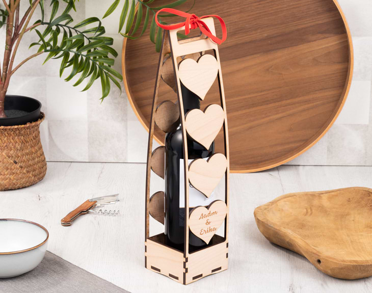 • Portabotellas de cava "Corazones" personalizado • Botella opcional • Tarjeta Recordatoria. IMPORTANTE: prohibida la venta de bebidas alcohólicas a menores de 18 años.