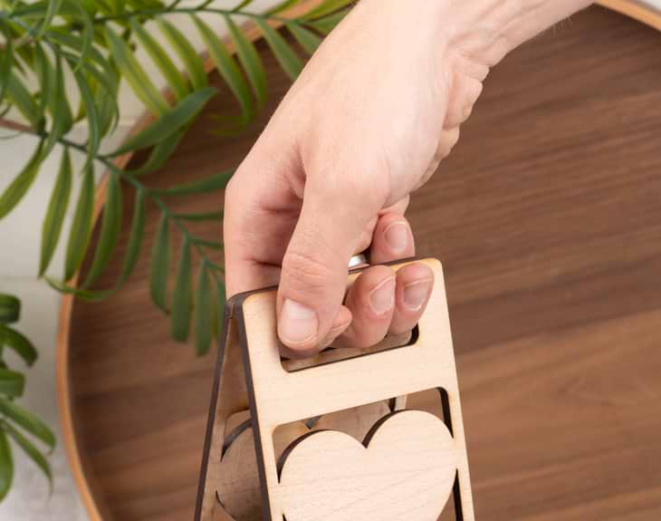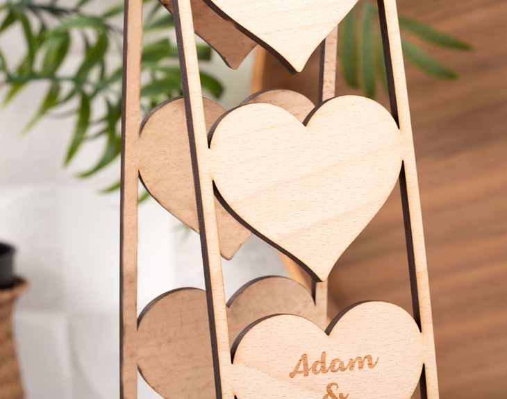 El portabotellas perfecto para regalar una botella de cava que se vaya a abrir en una ocasión romántica. Está hecho en madera, tiene un diseño ergonómico que hará que tu botella de Gran Amat de 750 ml se transporte de manera segura y lo personalizamos con el nombre que tú quieras. Dimensiones: 40 x 9 cm.
