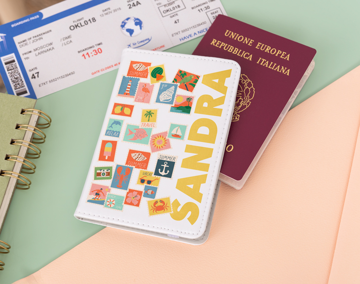 Si te encanta viajar de aquí para allá todo el tiempo, hay un accesorio que nunca te puede faltar. Y es que si tu hobbie es recorrer el mundo, solo necesitas llevar siempre contigo este adorable y práctico porta pasaporte personalizado. Así, siempre tendrás bien localizado tu documento y no seguro que no lo pierdes porque irá muy bien protegido. ¡Es lo más! No te olvides esta original funda para pasaporte si estás organizando tu próximo viaje porque estamos seguros de que se convertirá en tu mejor aliado. Pero sin duda, lo mejor es su diseño, lleno de adorables sellos que te harán ser la envidia de todo el mundo. Este porta pasaporte es totalmente personalizable, por lo que además de poder elegir el diseño que más te guste también podrás escribir un nombre y darle ese toque que hará que sea un regalo único. ¡Nadie más tendrá uno igual! Medidas: 14 cm x 9,5 cm.