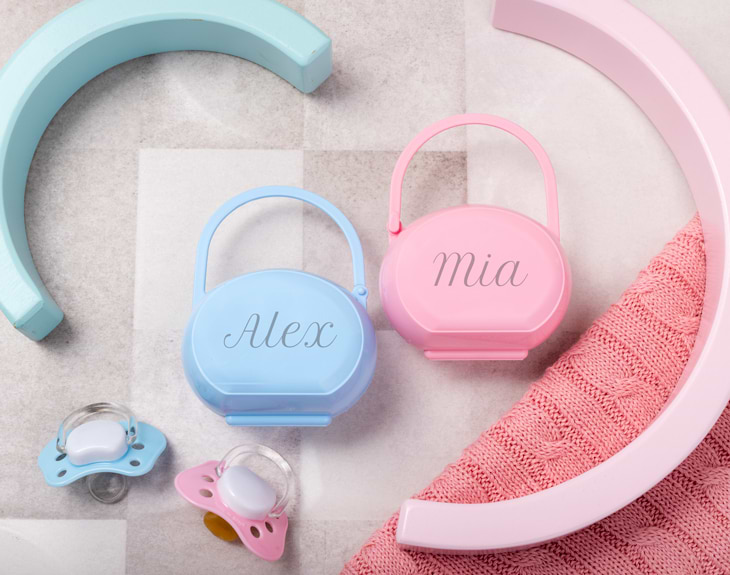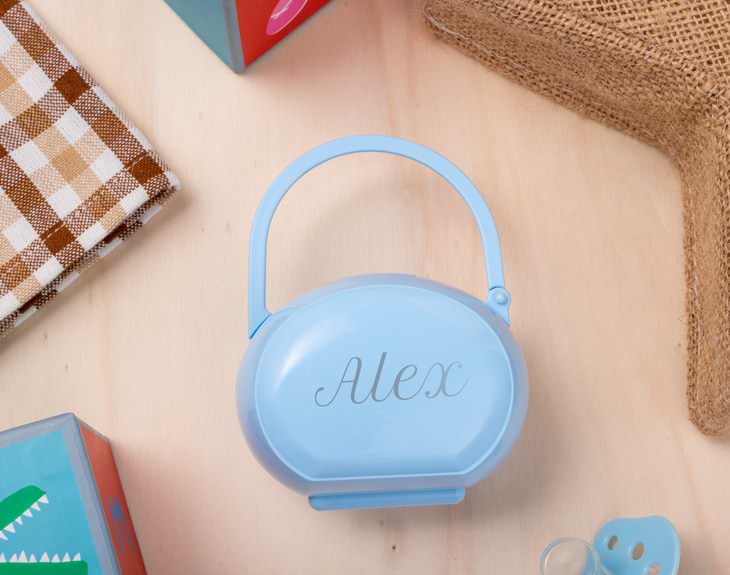 Evita la suciedad y protege el chupete de tu niño con este portachupetes personalizado. Con un bonito y sencillo diseño, el portachupetes de Regalo Original te ayudará a guardar el chupete del bebé y sacarlo de nuevo sin tener que limpiarlo. Ahorrarás tiempo, y sobre todo, energías. Antes de pagar, te preguntaremos por el nombre del niño para personalizar al máximo el producto. Además, podrás elegir el color que más te guste: azul o rosa.