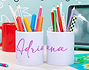 • Portalápices de cerámica personalizado. • Tarjeta recordatoria
