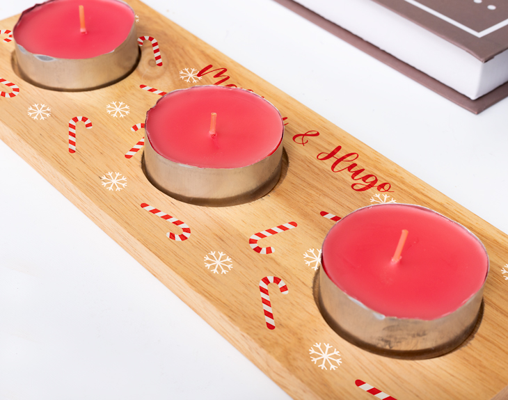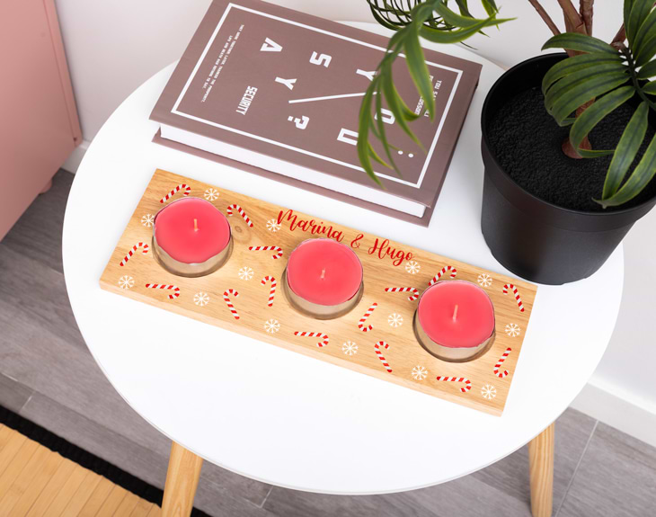 En Navidad también toca decorar nuestra casa para que tenga todo el espíritu navideño del mundo. El árbol, los adornos, las guirnaldas... Todo hace que nuestro hogar luzca como en una película. Pero sin duda, para conseguir que nuestra casa sea mucho más acogedora necesitas este portavelas personalizado. Su diseño súper navideño es perfecto para decorar cualquier rinconcito en estas fechas tan señaladas. ¡Quedará genial! Este original portavelas de madera es el regalo perfecto para sorprender a alguien muy especial estas navidades, porque además de ser bonito, lucirá genial en cualquier casa. Seguro que no se espera recibir un regalo tan bonito el día de Navidad y estará deseando poner sus velas favoritas. ¡Es ideal! Este adorno se encargará de decorar y dar mucho amor a tu casa esta Navidad y quien lo vea, seguro que querrá uno igual. Además, podrás personalizarlo totalmente a medida eligiendo qué diseño te gusta más y añadiendo los nombres de las personas que tú quieras. Quedarán genial junto a este diseño con bastones de caramelo. ¡Un regalo único!