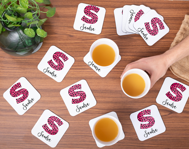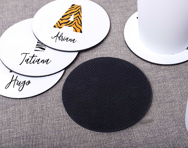 Olvida tener que frotar y frotar para que salgan las manchas de los vasos en la mesa. Con nuestro posavasos de neopreno "Animal print" esto se acabará. Sin duda, es algo que no puede faltar en tus fiestas caseras. O, por otro lado, si quieres tener un detalle con ese anfitrión tan detallista, estos posavasos son ideales, le encantarán. Y es que este posavasos personalizado está pensado para los amantes del animal print. Porque está diseñado con una letra de nuestro alfabeto más salvaje de todos. ¡Es muy fashion! Lo mejor de todo es que es personalizable, podrás escribir el nombre que tú quieras junto con la inicial. ¡Será muy original! Personalizar estos posavasos de neopreno es muy sencillo. Elige qué forma te gusta más (redonda o cuadrada) y cuántos quieres. Añádelos al carrito y entra en el área de personalización. Una vez ahí, solo tienes que escribir el nombre o texto que quieras y escoger la inicial animal print que más te guste. Pronto estará perfecto y listo para regalar. ¡Es el mejor regalo del mundo! Diámetro del posavasos redondo: 9,5 cm. Medidas del posavasos cuadrado: 10 cm x 10 cm. Grosor de ambos: 0,3 cm.