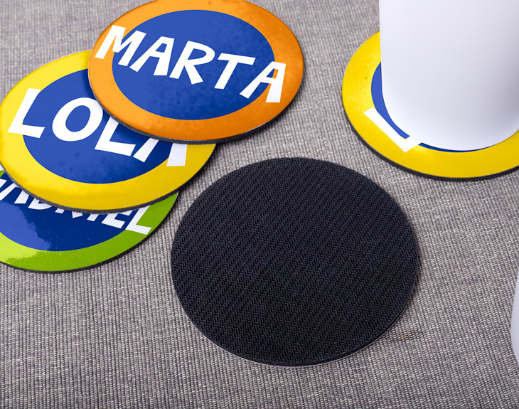 • Posavasos de neopreno personalizados. • Tarjeta recordatoria
