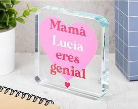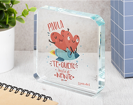 ¿Cuánto hace que no le dices "te quiero" a alguien? Todos tenemos amigos, familiares o una pareja a la que queremos muchísimo. Y es que son esos seres queridos los que hacen que nuestros días sean mucho más llevaderos. Seguro que has vivido experiencias increíbles con todos ellos: comidas, cines, quedadas familiares, o esa primera cita con tu pareja que te hizo quererle para siempre. No hay una frase más importante en la vida de cualquier persona que un "te quiero". Por eso, ¿por qué no declararte de una forma original a ese ser querido que tanto quieres? ¡Tenemos un producto de lo más amoroso para cumplir con este objetivo! Este prisma de cristal personalizado será el detalle perfecto para esa personita especial que siempre está ahí para ti. Este prisma cuadrado con bordes redondeados está hecho para decirle un romántico "te quiero" a una de esas personas que llenan tu vida de luz y alegría. ¿Cómo puedes personalizar este regalo original para su salón? ¡Solo tendrás que añadir el producto al carrito y entrar en el diseñador! Escribe el nombre de esa personita y crea un regalo de lo más bonito para él o ella. ¡El diseño aparecerá impreso en el prisma! Medidas del prisma cuadrado: 9,5 x 1,5 centímetros. Medidas de la caja: 13,5 x 12,5 centímetros. Material: cristal.