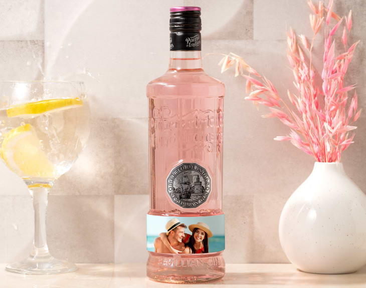 Ahora puedes regalar una botella de Puerto de Indias con la etiqueta personalizada, con la foto o el texto que tú quieras. Seguramente, Puerto de Indias es la ginebra española más reconocida. Su característica versión de fresa, con color rosado y sabor dulce, gusta por igual en todos los puntos de nuestra geografía. Imagínate la cara de tus amigas cuando aparezcas en la fiesta con una botella de Puerto de Indias personalizada bajo el brazo. ¡Será la pera limonera!