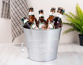- Sets de copas grabadas: si lo que quieres es brindar y que los novios recuerden el momento toda su vida, tenemos sets formados por copas grabadas y botellas. Pueden ser de cava o de vino.