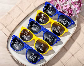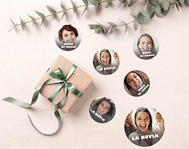Otro regalo muy económico y que cada vez está más de moda es el pack de chapas para boda. Imagínate: 100, 200 o la cantidad de chapas que nos pidas, todas indicando el nombre de la pareja y la fecha de la boda. ¡Y que vivan los novios! Ojito también con los accesorios para selfies, que son muy divertidos y en una boda se les saca mucho partido.