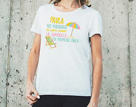 También tenemos nuestros propios diseños y plantillas para que puedas personalizarlas. De esta manera no tendrás que estrujarte tanto la cabeza y seguirás teniendo una camiseta personalizada con los nombres o los detalles que tú quieras.