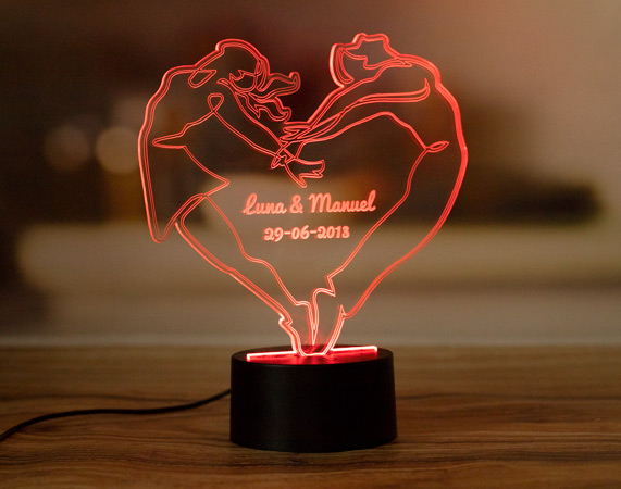 ¿Vuestro aniversario está cada vez más cerca? ¿Es su cumpleaños y todavía no tienes el regalo perfecto? Nuestras lámparas personalizadas son el producto que estabas buscando. Cuentas con decenas de diseños románticos entre los que elegir. Si sois una pareja de lo más cariñosa, en esta sección encontrarás esos diseños que os dejarán el corazón calentito.