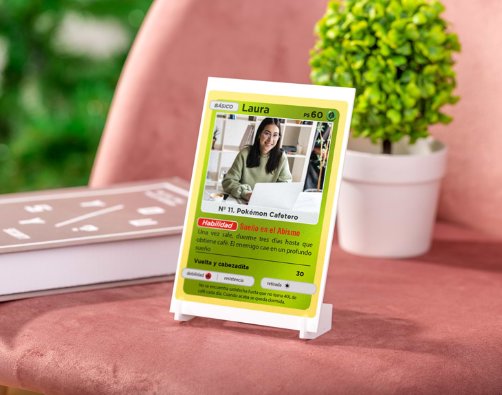 ¿Sabes lo mejor? En la sección de lienzos tenemos más productos. Por ejemplo, hacemos figuras a tamaño real en cartón pluma de 1 centímetro de grosor. Es un producto muy divertido, ya que lo puedes hacer con la foto que tú quieras. A veces nos las piden para bodas, otras para jubilaciones, incluso para fiestas… Las hacemos muy a menudo con fotos de cantantes, actores y futbolistas: si la persona está loca por un grupo, puede tener a su guitarrista favorito siempre con él.
