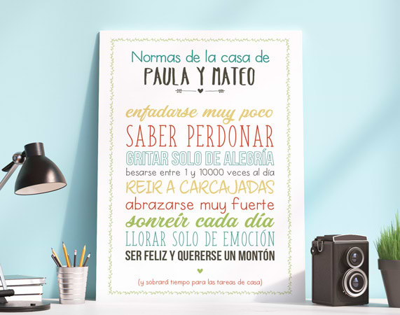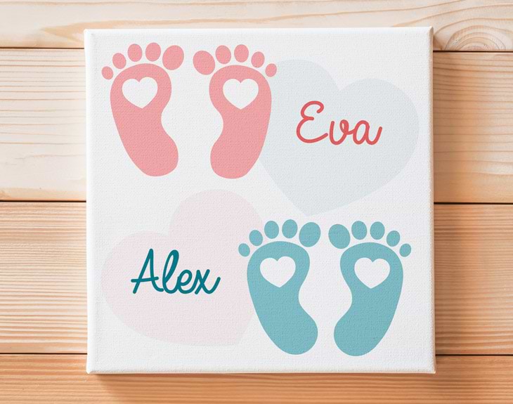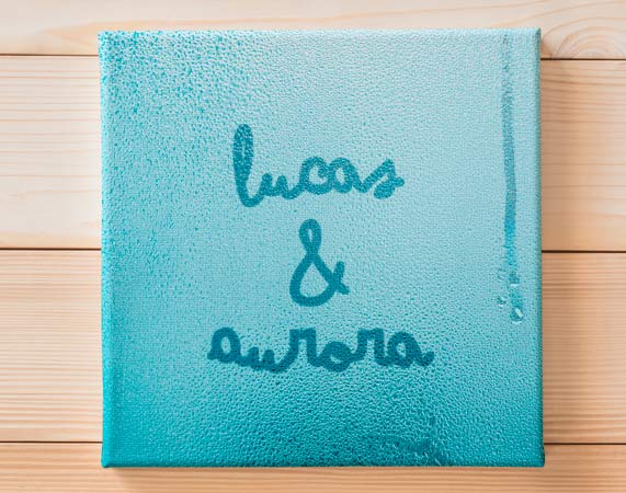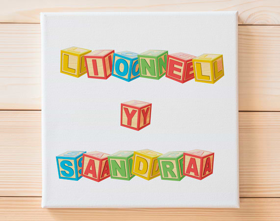Tenemos más lienzos con efecto (como el de resaltar colores o el que simula a Polaroids), pero queremos hablaros también de los productos infantiles. Nos referimos al cuadrito para bebé (si nos das el nombre lo pondremos junto con un diseño precioso de una cigüeña) y el lienzo nacimiento.