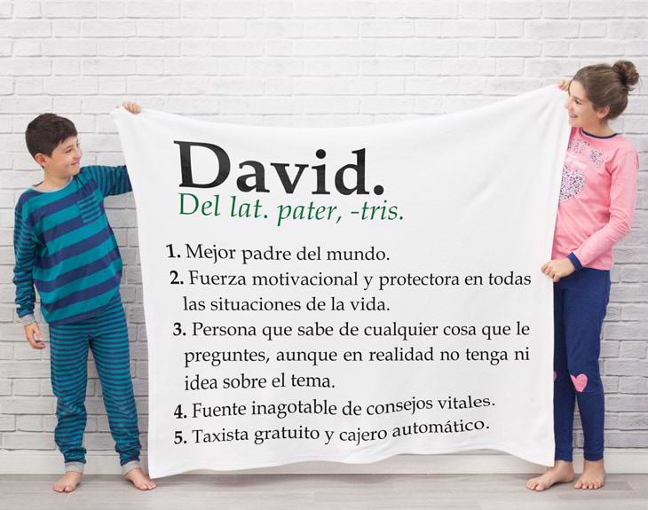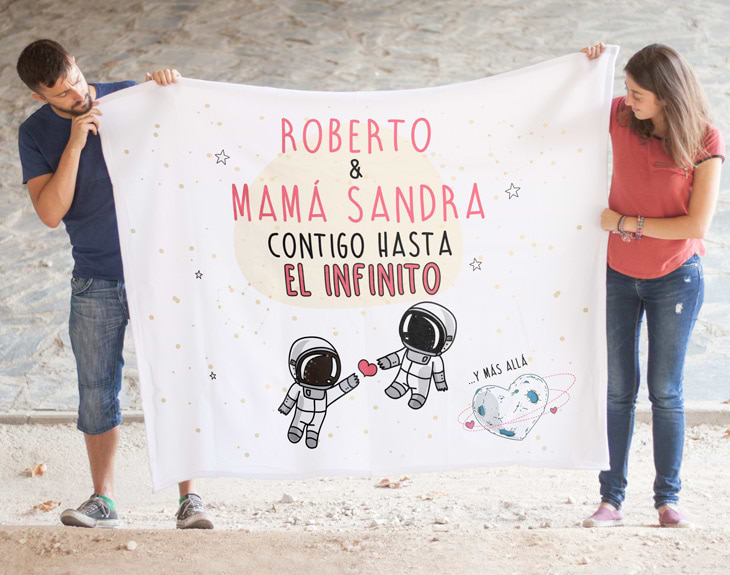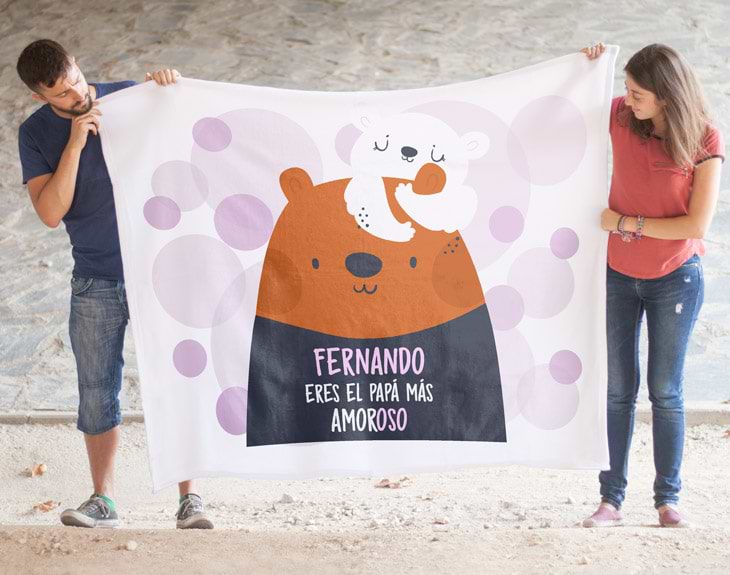 Nuestro equipo de diseño crea mantas para el Día de la Madre, el Día del Padre, San Valentín y un montón de fechas señaladas más para que puedas escoger la manta que más te guste. Lo normal es que solo tengas que responder a algunas preguntas, como nombre, fechas o mensaje, y que el diseño se adapte a tus necesidades.