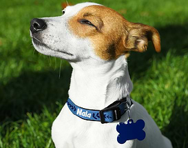 - Colgantes personalizados: Si tu perro es de esos a los que les encanta correr y jugar como un loco, necesita uno de nuestros colgantes personalizados. Se trata de una pequeña placa para colgar en su collar con su nombre y vuestro teléfono, para que en el caso de que algún día se pierda, puedan localizaros rápidamente. Además de ser un regalo muy práctico, tiene una forma de huesito súper graciosa. ¡Tu perro se sentirá mucho más seguro y mucho más guapo!
