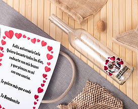 Podemos presumir de una variedad de regalos personalizados casi infinita. ¿Buscas regalos para un cocinero? Tenemos delantales con foto. ¿Regalos para amantes del vino? Desde botellas personalizadas hasta copas grabadas. ¿Bisutería? Tenemos un montón de colgantes y pulseras grabadas.